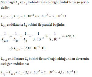A olmaktadır. Bobin üzerinden geçen akım ise ana koldan geçen akımın 3 ?'luk ve 6 ?'luk dirençlerin direnç değeri ile ters orantılı olarak paylaşılmasıyla bulunur ve değeri