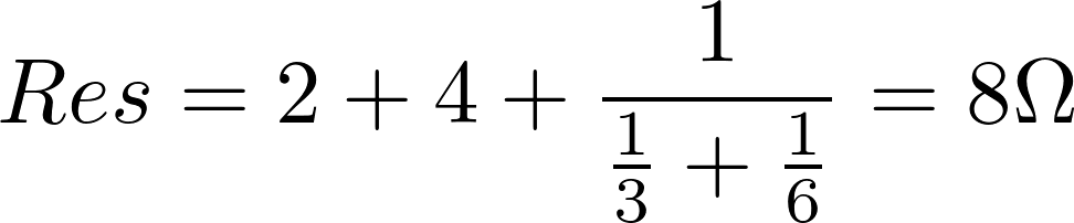 /Reş = (1/2) + (1/8) = 5/8 olarak bulunur. Bu durumda Reş = 1,6 Ω’dur.