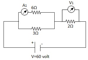 Ana koldan geçen akım 60 V/(3?//6?+2?)=15A olduğundan, 2 ?'luk direnç üzerinden 15A.2?=30V gerilim okunur.