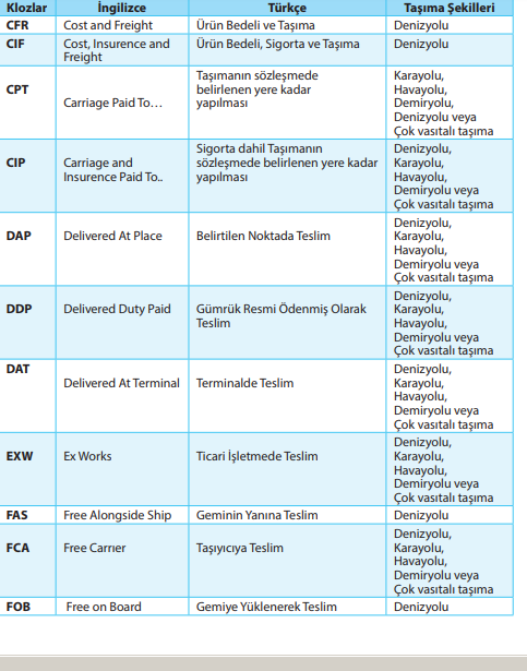 __________teriminde olan yükümlülükleri aynen üstlenmekte, ancak bunlara ek olarak taşıma sırasında malların kayıp ve hasar riskine karşı deniz sigortası sağlama yükümlülüğünü de üstlenmektedir.