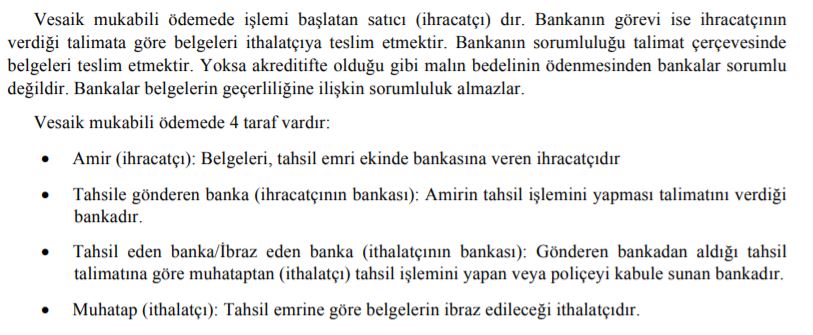 Dış ticarette ödeme şekillerinden vesaik mukabili ödemede kaç taraf vardır?