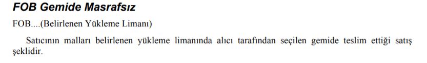 "Satıcının malları belirlenen yükleme limanında alıcı tarafından seçilen gemide teslim ettiği satış şeklidir" aşağıdaki kısaltmalardan hangisi ile ifade edilebilir?