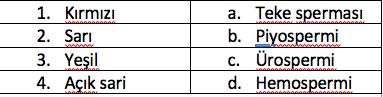 Spermanın rengine göre adlandırılışları hangi şıkta doğru olarak verilmiştir?