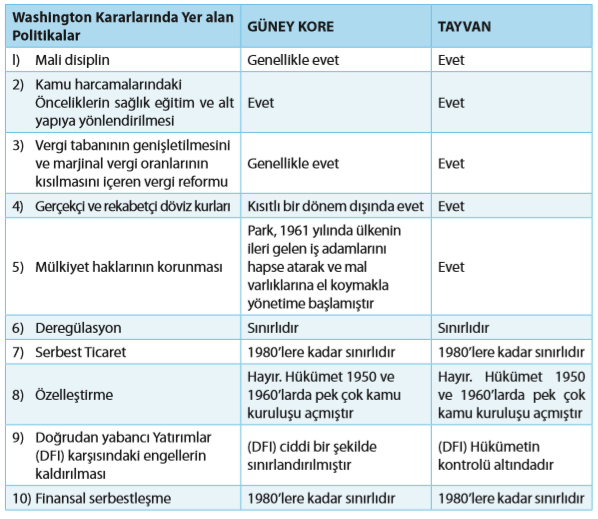 Washington kararlarında yer alan politikalara baktığımızda Tayvanın takip ettiği politikalar arasında aşağıdakilerden hangisinde sınırlama vardır?