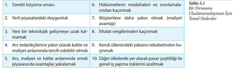 Öncüllerde yer alan bilgilerden hangi/hangileri bir firmanın uluslararasılaşması için temel nedenleri arasındadır?
