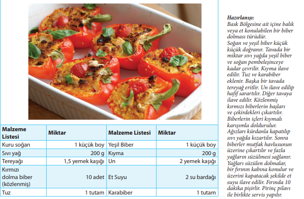 Görselde tarifi verilen İspanyol yemeği "Pimientos Rellenos" Kırmızı Biber Dolmasıdır.