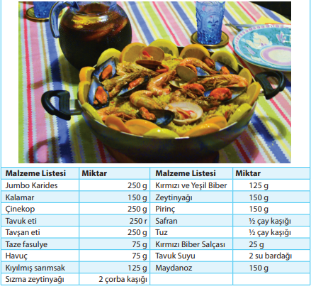 Görselde verilen İspanyol yemeğinin adı Paella Valanciana (Valensiya usulü Paella) dır.