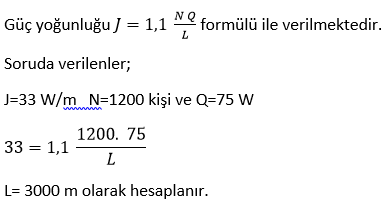 Nüfusu 1200 kişi olan bir köyde güç yoğunluğu 33 W/m olarak hesaplanmış ise şebeke uzunluğu kaç metredir?