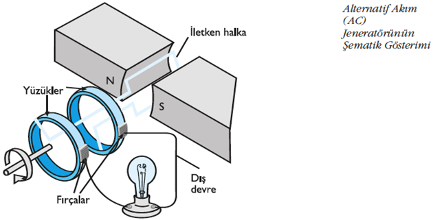 AC jeneratörler mekanik enerjiyi ac elektrik enerjisine dönüştüren elektrik makineleri olarak tanımlanır. Jeneratörü oluşturan temel elemanlar, mıknatıs, tel halka, yüzükler ve fırçalardır.