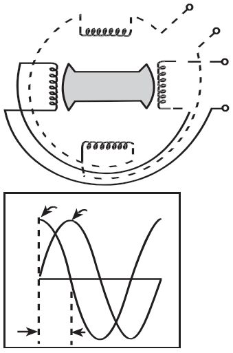 İki fazı oluşturan sarımlar fiziksel olarak birbirlerine dik açılarda (90°) bulunurlar.