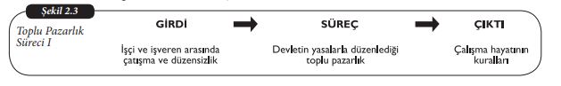 İşçi sendikası ile işveren veya işveren sendikaları arasında sürdürülen ve işkolu veya işyerinde ücret ve çalışma koşullarını belirlemeye yönelik bir sözleşme ya da uyuşmazlıkla sonuçlanan pazarlıklar |