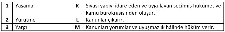 Doğru eşleştirme 1-L, 2-K, 3-M olmalıdır. Bu nedenle doğru cevap B seçeneğidir.