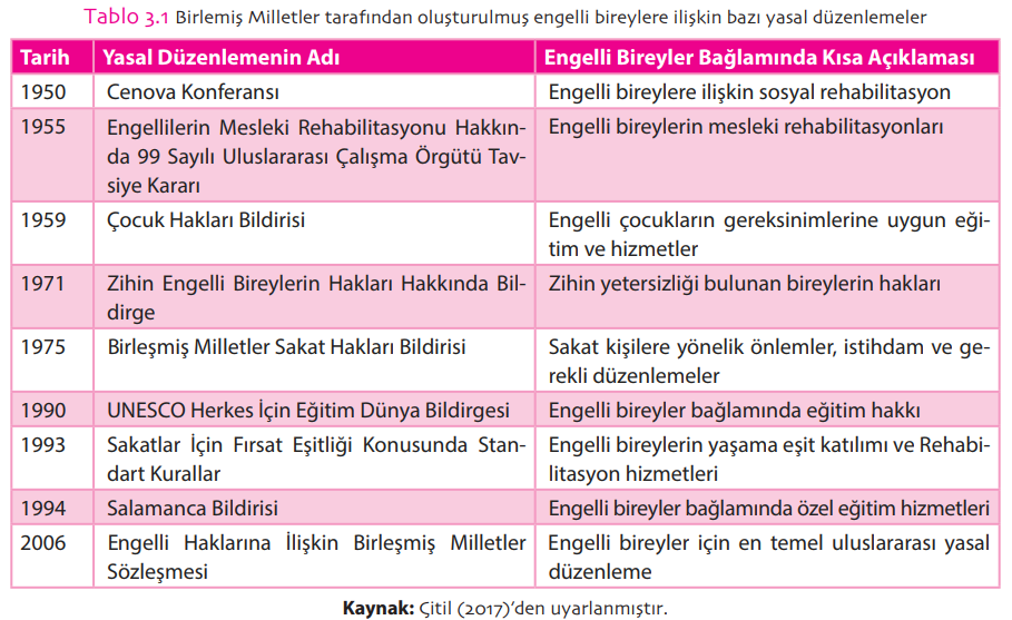 Engelli bireyler için en temel uluslararası yasal düzenleme aşağıdakilerden hangisidir?