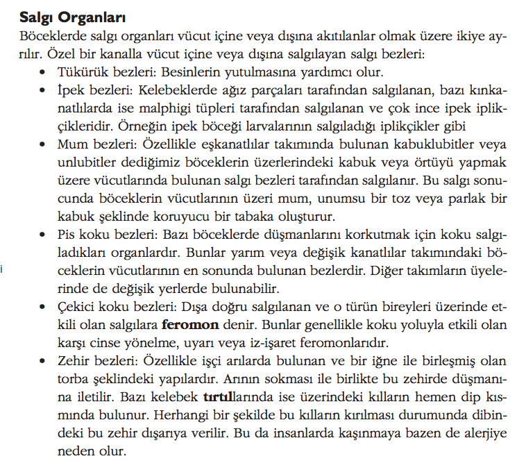 Lenf bezleri böceklerde salgı organları arasında değildir.