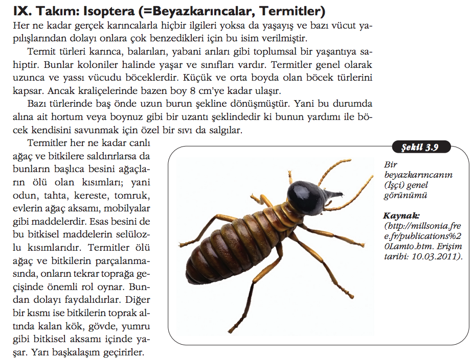 Ölü ağaç ve bitkilerin parçalanmasında, onların tekrar toprağa geçişinde önemli rol oynayan ve bundan dolayı faydalı olan böcek türü aşağıdakilerden hangisidir?