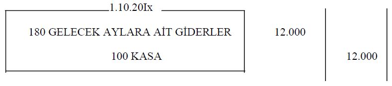 Cari döneme ait olmayan, ancak cari dönemde ödenmiş bulunan giderler ilgili dönemi gelinceye kadar bir bilanço hesabında bekletilir. Bir yıldan daha kısa süreye ait olanlar bilançonun aktifinde geçici bir hesapta; 180 Gelecek Aylara Ait Giderler hesabında, bir yıldan uzun olanlar ise 280 Gelecek Yıllara Ait Giderler hesabında izlenir. Gelecek bilanço dönemlerine ait peşin ödenmiş giderlerden bir yılın altına düşenler 180 Gelecek Aylara Ait Giderler hesabına, ilgili dönemi ilgilendirenler ise ilgili dönemin giderlerine aktarılır.