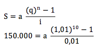 S = 150.000 TL i = % 1 (0,01) q = 1,01 (1+0,01) n = 10 a = ?