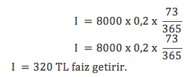 P = 8000 TL r = % 20 t = 73/365 I = ?