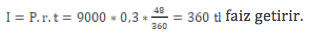 9.000 tl %30 faiz oranıyla 48 günde kaç lira faiz getirir? (Yıl 360 gün)