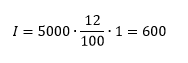 I=Faiz miktarı P=Anapara, r=faiz oranı ve t=süre olmak üzere I=P.r.t formülünde değerler yerine yazılırsa elde edilir.