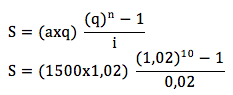 q = 1,02 (1 + 0,02) n = 10 S = ?