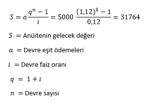 Bir kişi her yıl sonunda bir bankaya 5000 lira yatırılmaktadır. Yıllık faiz oranı %12 olduğuna göre 5 yıl sonunda kaç lira biriktirilmiş olur?
