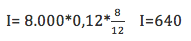 I=P*r*t P=8.000 r=%12 t=8/12 I=?