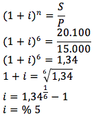 P = 15.000 TL n = 6 S= 20.100 TL i = ?