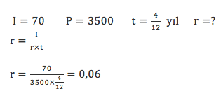 Bilge 3500 TL 4 aylık mevduat hesabı açtırmıştır. 70 TL faiz getirisi elde etmiştir. Bankanın uyguladığı faiz oranı nedir?