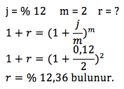 Yıllık nominal faiz oranı %12 ve altı ayda bir faizlendirme yapılıyorsa, yıllık efektif faiz oranını kaç olur?