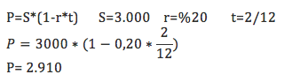 İskonto tutarı= 3.000-2.910 = 90 TL bulunur.
