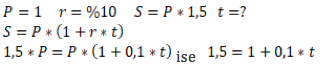 Yıllık %10 faiz oranı üzerinden bankaya yatırılan bir miktar para kaç yıl sonra kendisinin %50’si kadar faiz getirisi sağlar?