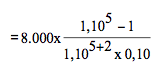 Problemde 2 devre hiç ödeme yapılmadığı için geciktirilmiş anüite sözkonusudur. 2 yıl ödeme yapılmamış, 5 yılda da 8.000TL’lik eşit taksitlerle geri ödeme yapılmıştır. Geçiktirilmiş anüitelerle ilgili eşitlikten faydalanarak alınan kredi hesaplanabilir.