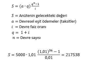 Ev almayı planlayan bir kişi her ay başında bir bankaya 5000 lira yatırmaktadır. Aylık faiz oranı %1 ise 3.yıl sonunda ev için kaç lira biriktirmiş olur?