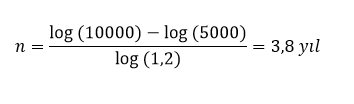 Yıllık %20 bileşik faizle bankaya yatırılan 5000 lira kaç yıl sonra 10000 lira olur?