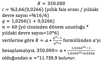 15 yıldaki faiz 15. yılın başındaki borç üzerinden hesaplanacağından öncelikle 15. yıl başında kalan borcun bulunması gerekir.