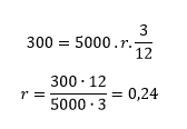 2) S=P (1+r.t) formülünden bulunur. Yani r=0,24 dür.