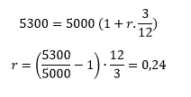 Bir bankaya 5000 lira 3 aylığına belli bir faiz oranıyla yatırılmıştır. Süre sonunda paranın ulaştığı miktar 5300 lira olduğuna göre faiz oranı yüzde kaçtır?