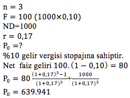 Vadesine 3 yıl kala %10 faizli 1000 TL nominal değerde bir tahvilden %17 getiri beklenirse bu tahvil kaç TL satın alınmalıdır?