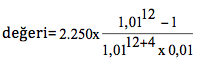 Yukarıdaki değerleri “Normal Anünitelerde Gelecek Değerin Hesaplanması” formülünde yerine koyarsak,