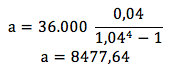 R = 36.000 TL n = 4 i = 0,16/4 = 0,04