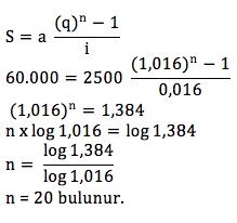 60.000 TL’lik bir araba almak sabit gelirli bir çalışan bu parayı biriktirmek için her ay maaşından 2500 TL’yi aylık % 1,6 faiz veren bir bankaya kaç ay boyunca yatırılmalıdır?