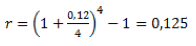 Yıllık nominal faiz oranı %12 ve üç ayda bir faizlendirme yapılıyorsa yıllık efektif faiz oranı ne olur?
