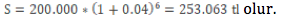 P=200.000 tl, i=%4( yıldaki devre sayısı 3 olduğundan yıllık faiz oranı 3’e bölünür)