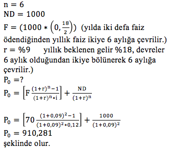 Vadesine 3 yıl kalmış altı ayda bir faiz ödemeli 1000 TL nominal değerli ve kupon %14 faizli tahvilden %18 getiri beklenirse tahvilin değeri ne olur?