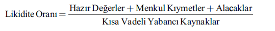 Likidite oranı, her bir liralık nakitle ödenecek kısa vadeli borca karşın paraya