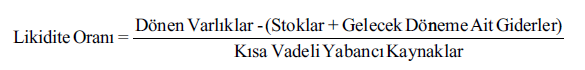 hızla çevrilebilen likit dönen varlık büyüklüğünü gösterir ve aşağıdaki gibi hesaplanabilir:
