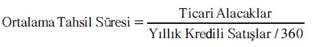 Ortalama Tahsil süresi= 100,000/(500,000/360)=72 gün