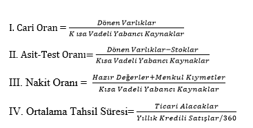 Yukarıda verilen eşitliklerden hangileri likidite oranlarının hesaplanmasında kullanılır?