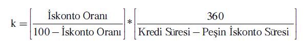 Satıcı açısından kredi maliyeti yukarıdaki fomül ile hesaplanır. Buna göre: